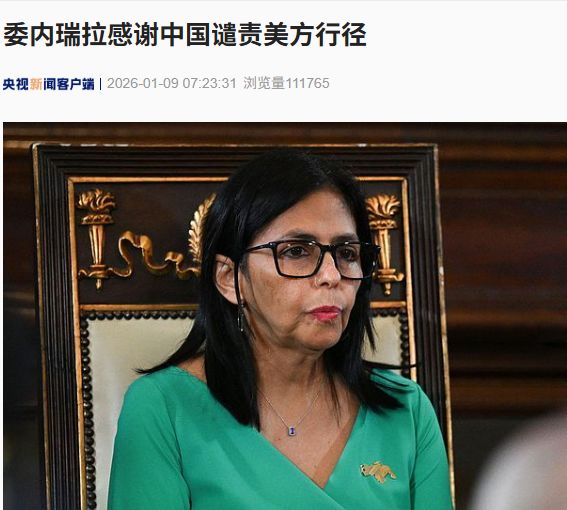 当地时间1月8日,委内瑞拉临时总统德尔西·罗德里格斯感谢中国谴责美国强行控制马杜罗总统及其妻子和侵略委内瑞拉的行径。
